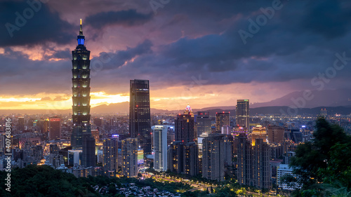Obraz premium Taipei City Skyline at sunset, Taiwan