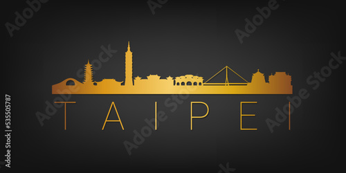 Obraz premium Taipei City, Taiwan Gold Skyline City Silhouette Vector. Golden Design Luxury Style Icon Symbols. Travel and Tourism Famous Buildings.