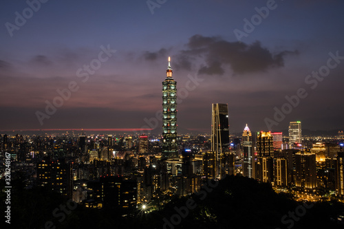 © Michael Chan, Fototapeta premium taipei skyline at night