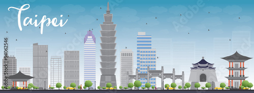 Obraz premium Taipei skyline with grey landmarks and blue sky