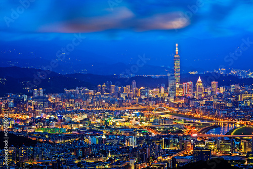 © nicholashan, Fototapeta premium Taipei, Taiwan evening skyline.