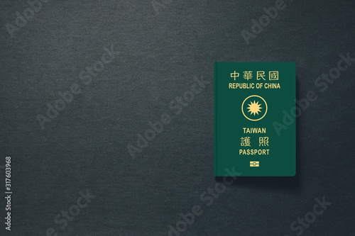 © Aaftab Sheikh, Obraz premium Taiwan Passport on dark background with copy space - 3D Illustration