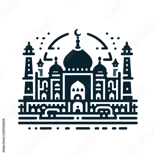 Fototapeta premium Taj Mahal vector illustration with crescent moon.