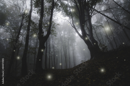 Fototapeta premium tajemnicze magiczne światła mieniące się nocą w fantastycznym lesie
