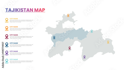 Naklejka premium Tajikistan Modern Map Infographic Template, Detailed infographic map of Tajikistan Popular City