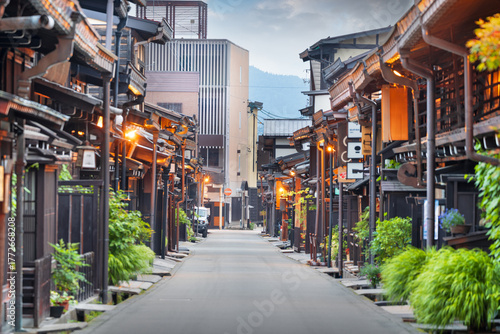 Obraz premium Takayama, Japan at the historic Sannomachi Street