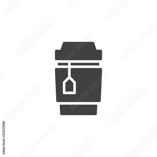 Obraz premium Take away Tea cup vector icon. filled flat sign for mobile concept and web design. Tea bag cup simple solid icon. Symbol, logo illustration. Pixel perfect vector graphics