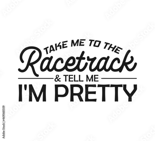 Fototapeta premium Take Me To The Racetrack & Tell Me I'm Pretty, Racing, Racing sayings svg, Car Racing Quote, Car Racing, Racing Vector, Racing Typography, Gifts, It's Race Day, Race Track
