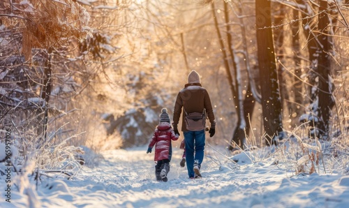 © Q STOCK, Naklejka premium Taken from behindFaceless family walking hike through