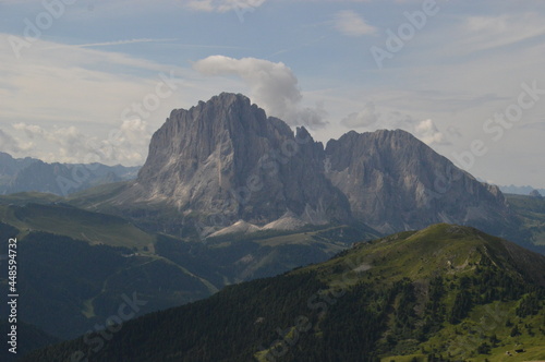 © ChrisOvergaard, Fototapeta premium Taking in the stunning mountain views from a steep ridge in the Dolomites