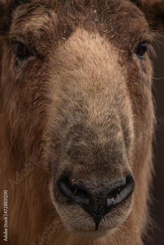 Fototapeta premium Takini animal with brown hair in cold winter day