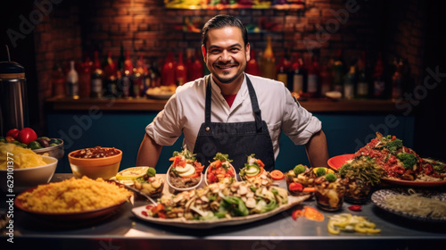 Fototapeta premium Talented Chef Creates Tacos at a Festive Outdoor Fiesta in San Miguel de...