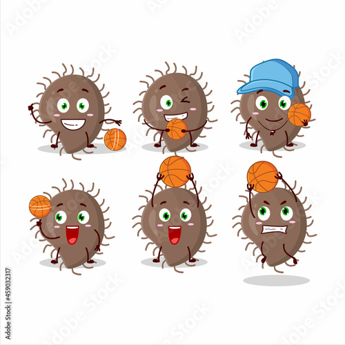 Fototapeta premium Talented Coronaviridae cartoon character as a basketball athlete