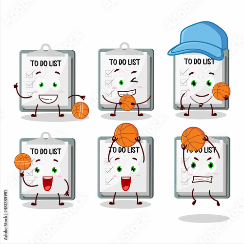 Fototapeta premium Talented paper sheet with clipboard cartoon character as a basketball athlete