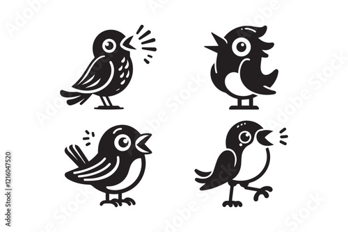 © Rafsan, Fototapeta premium Talking bird cartoon silhouette on white background
