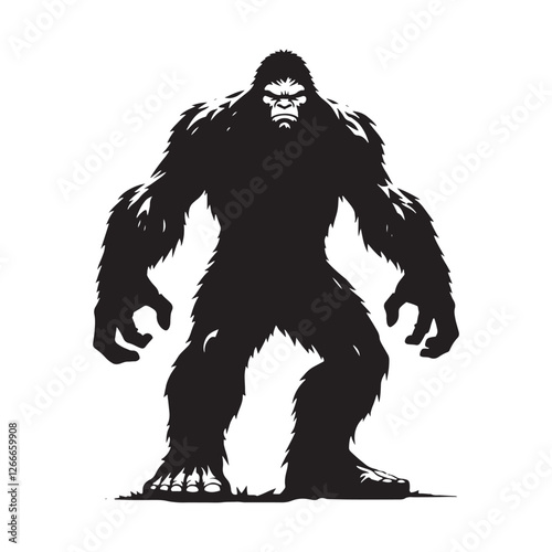 © Vectorhub, Fototapeta premium Tall and powerful Bigfoot silhouette crafted for legend-based artwork - Bigfoot illustration - Bigfoot vector - mythical creature silhouette