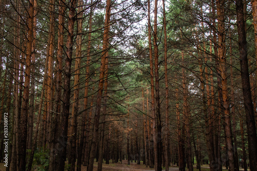 Obraz premium Tall and powerful pine trunks in a protected forest