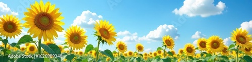 Obraz premium Tall and statuesque, the giant sunflowers stand under a brilliant blue sky, sunny, sky