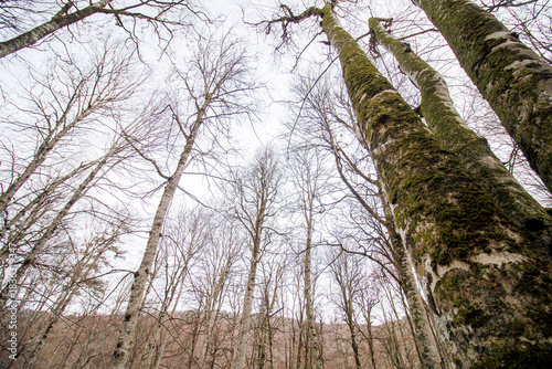 © Erdem, Fototapeta premium tall bare trees and sky in the autumn forest
