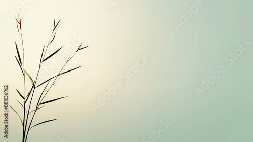 © WALI, Obraz premium Tall blades of grass swaying in the wind against a soft, blurred background of sky and water. Concept of nature, tranquility, and peace.