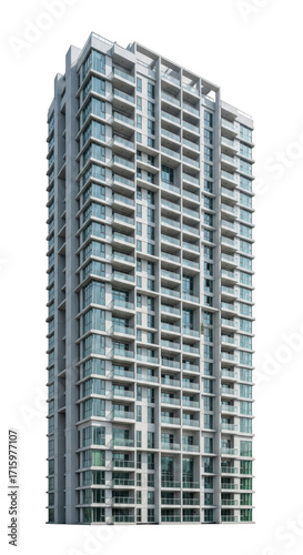 © Komola, Obraz premium Tall building with many balconies on transparent background