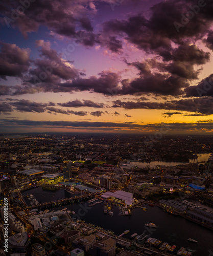 © Southern Creative, Fototapeta premium Tall buildings in the city and in the evening from above