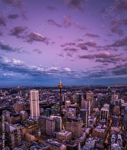 © Southern Creative, Fototapeta premium Tall buildings in the city and in the evening from above
