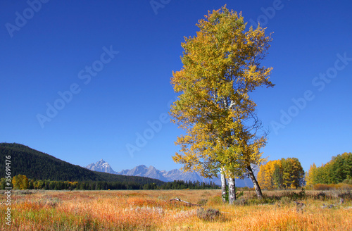 Fototapeta premium Tall colorful Aspen trees in prairie landscape