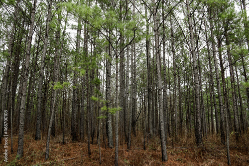 Fototapeta premium tall conifer pine tree forest roadside nature scene