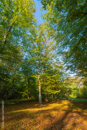 © Vastram, Fototapeta premium Tall deciduous tree in the forest