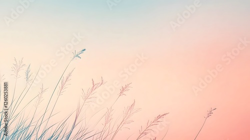 © irawan, Fototapeta premium Tall gentle grass sways against a soft pastel sky