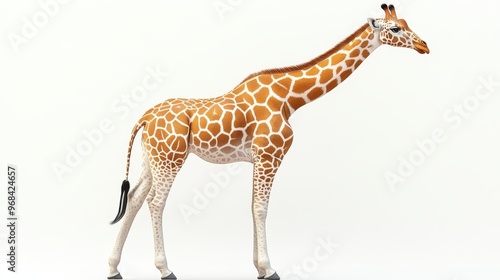 © sa-photo, Obraz premium Tall giraffe clipart with a long neck on a white background, cartoon style