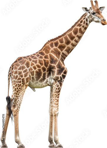 © Maestro, Obraz premium Tall giraffe standing side view, cut out transparent