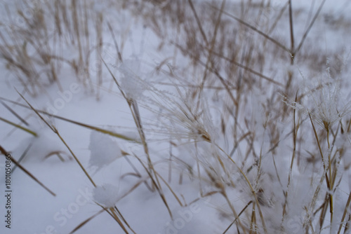 © Alyssa, Fototapeta premium tall golden grass in the white snow