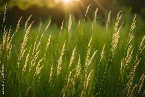 Fototapeta premium tall grass or wheat in a farmer's field blowing in the wind in the morning