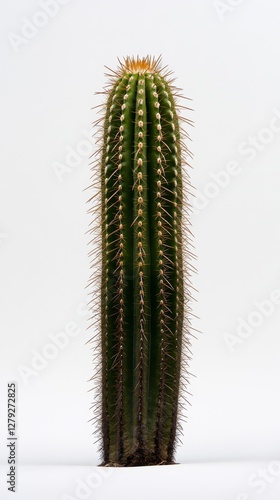 Naklejka premium Tall green cactus with long spines displayed against a plain background in a...
