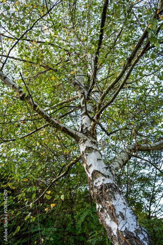 © Laslo, Fototapeta premium Tall green tree from below. Birch tree