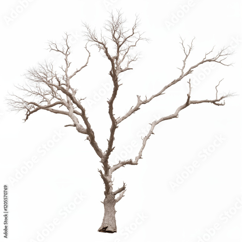 © Chintan, Obraz premium Tall Leafless Tree With Branches Against a White Background