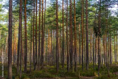 © EVGENII, Obraz premium Tall pine trees in a dense forest