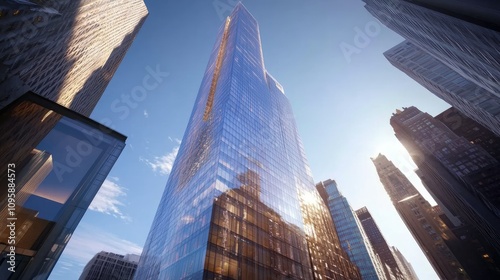 Naklejka premium Tall Skyscrapers Against Blue Sky at Close Perspective