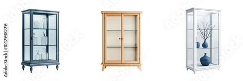 © Chuemon, Obraz premium tall transparent display cabinet with glass doors and shelves, ideal for showcasing decorative items isolated on transparent background
