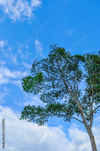 © Yohsuke, Obraz premium Tall tree with green leaves and the blue sky in the background