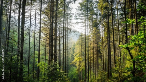 Fototapeta premium Tall Trees and Woodlands with Cedar and Fir Branches