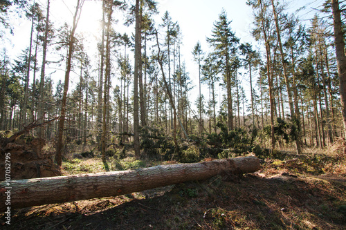© Sally Wallis, Fototapeta premium Tall trees fallen after storm