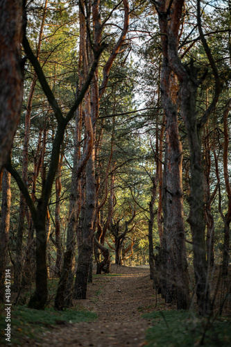 © Ванжа Юрий, Fototapeta premium tall trees in the forest grow in the sun