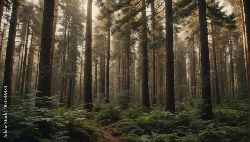 Obraz premium Tall trees in the forest, summer time jungle landscapes