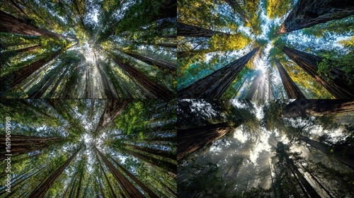 © Bulan, Obraz premium Tall trees reach to the sky in four perspectives