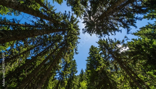 © Berkah10, Obraz premium Tall trees reaching for a bright sky