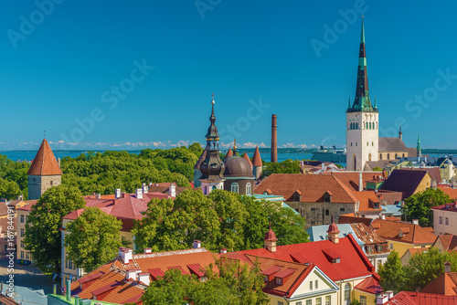 © krivinis, Fototapeta premium Tallinn, Estonia: aerial top view of the old town in the summer