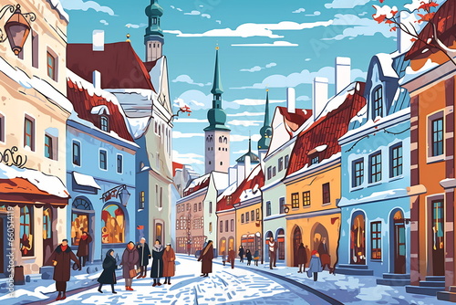 Obraz premium Tallinn urban landscape. Pattern with houses. Illustration